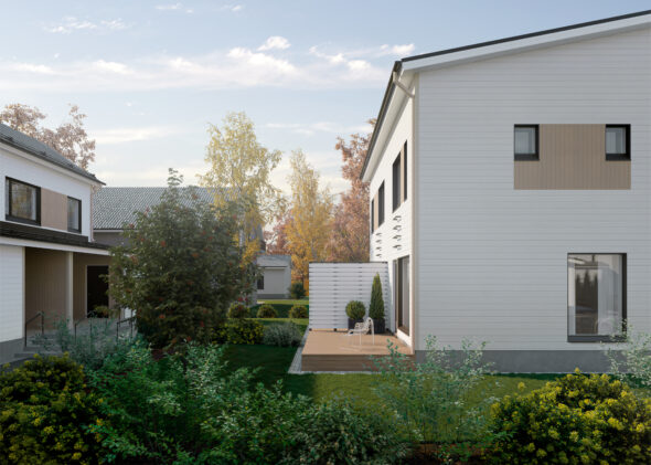 Kokonaisuutena hanke tarjoaa nykyaikaisia koteja, joissa yhdistyvät selkeä arkkitehtuuri, toimiva pohjaratkaisu ja yhteys ympäröivään vehreään pientaloalueeseen.”